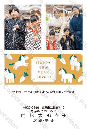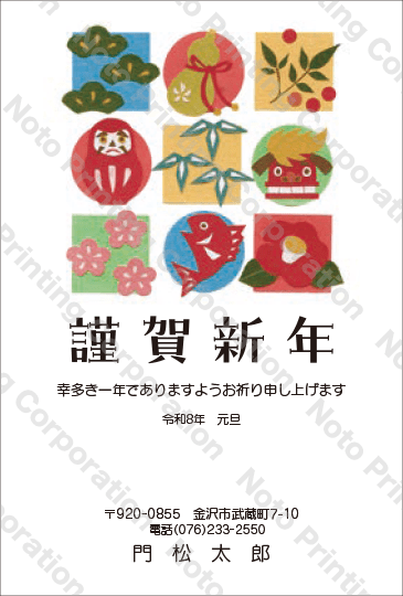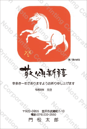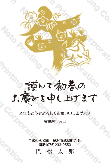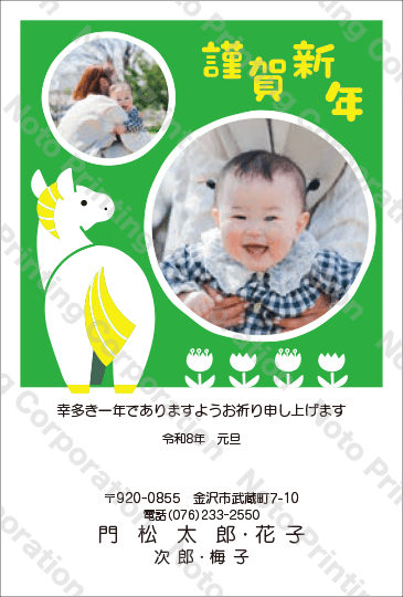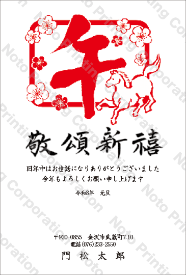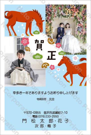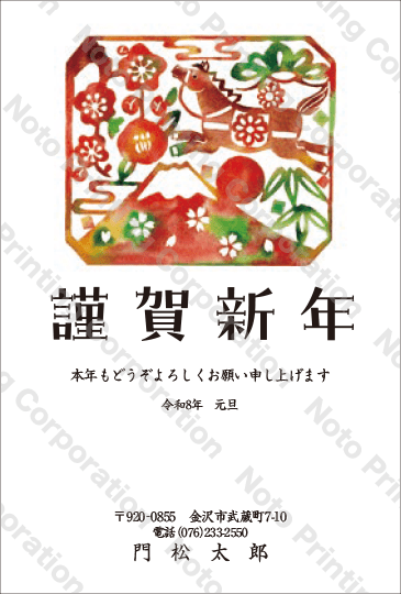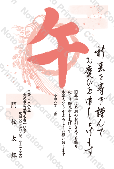 ※賀詞、挨拶文、住所、氏名等の色指定はできません。黒文字となります。