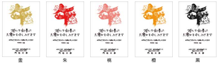 単色イラストは、絵柄部分を5つの色(金、朱、桃、橙、黒)からお選びいただけます。
